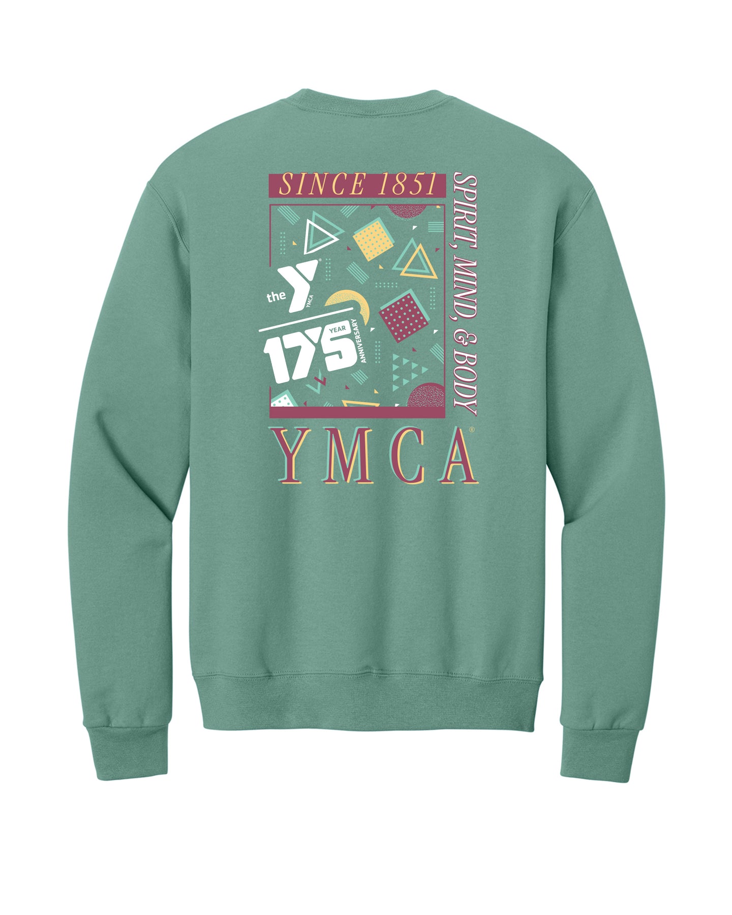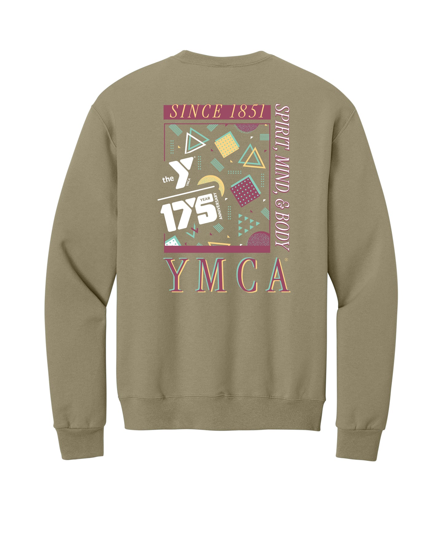 Celebrate community spirit with this YMCA anniversary Crewneck Sweatshirt featuring a geometric screen print design. This crewneck pays homage to the iconic organization's enduring legacy. Perfect for anyone who cherishes nostalgic fashion, this piece brings charm to your everyday wardrobe.